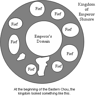 During the Spring and Autumn Period, only forty years of peace—during the rest of the time, the Chou ruling family lost their control and more and more control went to the fiefs. At first, 170 fiefs/states (each had an army and ruling family), but after fighting, there were only 15. By 481, there were only seven.