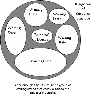 The seven fief-states went to war with one another (hence the name “Period of Warring States”). The members of the royal family held nominal power, but they had no real control and were killed in the fighting.
