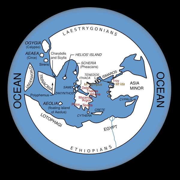 Images courtesy of http://en.wikipedia.org/wiki/Image:Homer_world_map-en.svg (This is an artist's rendition of the world, as described in The Odyssey.)